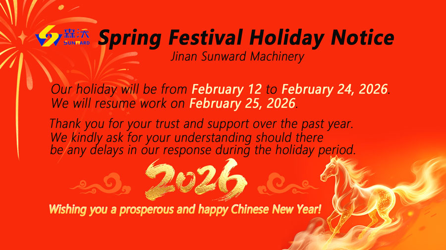 As spring returns and a new journey begins, on the occasion of the Lunar New Year of the Horse, all employees of Jinan Sunward Machinery Co., Ltd. extend our sincerest holiday greetings and heartfelt New Year wishes to you for your long-term trust and support! Thank you for your companionship along the way, witnessing our growth and progress. Your recognition and trust are our greatest motivation.